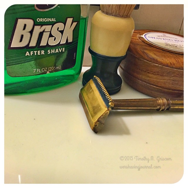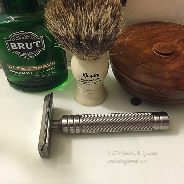 20Aug2015 Mongoose Posted in B2, Mongoose by timgriscom Shave of the Day August 20, 2015 Taylor of Old Bond Street lavender soap Kingsley badger brush Mongoose B2 razor Feather Professional blade (15) Brut aftershave