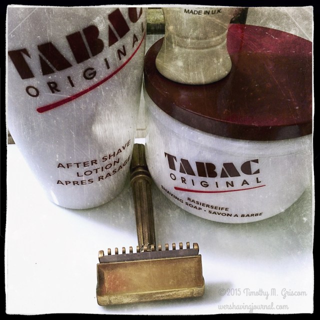 6Oct2015 Gem Micromatic Posted in Gem/ EverReady, Micromatic, Open Comb by timgriscom Shave of the Day OCtober 6, 2015 Tabac soap Kingsley badger brush Gem Micromatic open comb Gem coated stainless steel blade (8) Tabac aftershave