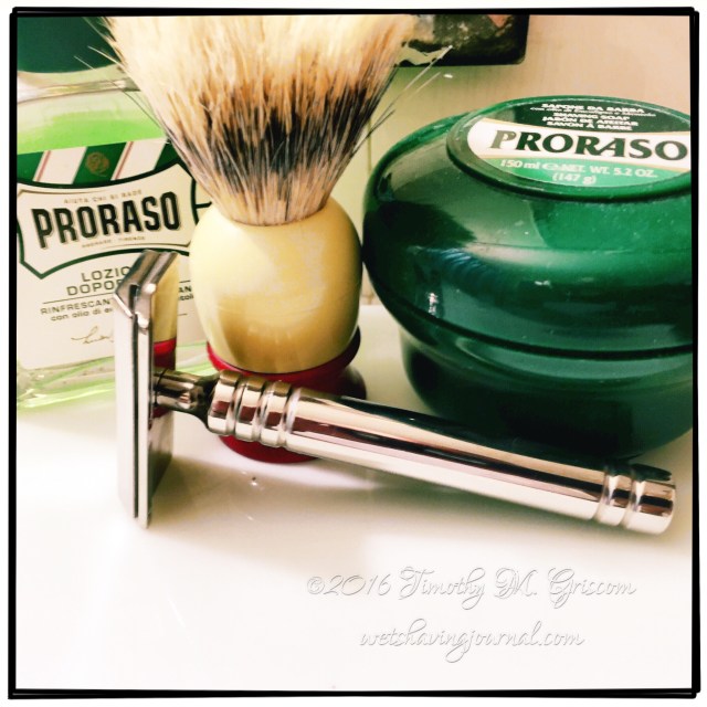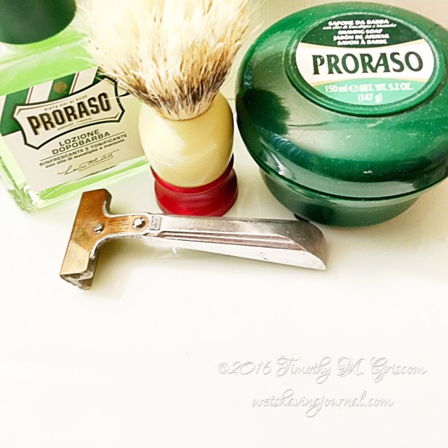 18Apr2016 Schick Type F Posted in Schick, Uncategorized by timgriscom Shave of the Day April 18, 2016 #loveforluke Proraso soap Ever-Ready C40 boar brush Schick Type F razor Schick blade (4) Proraso aftershave