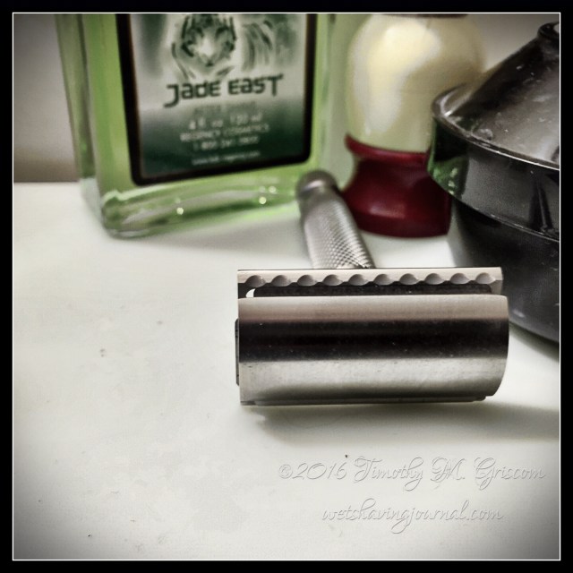 17Apr2016 Above the Tie Titan H1 Posted in ATT Titan, Uncategorized by timgriscom Shave of the Day April 17, 2016 #loveforluke Omega cream Ever-Ready C40 boar brush ATT Titan H1 razor Feather blade (7) Jade East aftershave