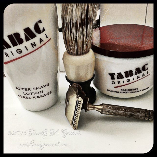 2Aug2016 Ever-Ready 1912 Posted in Gem/ EverReady, Uncategorized by timgriscom Shave of the Day August 2, 2016 #loveforluke Tabac soap Ever-Ready brush Ever-Ready 1912 razor Gem coated stainless steel blade (4) Tabac aftershave