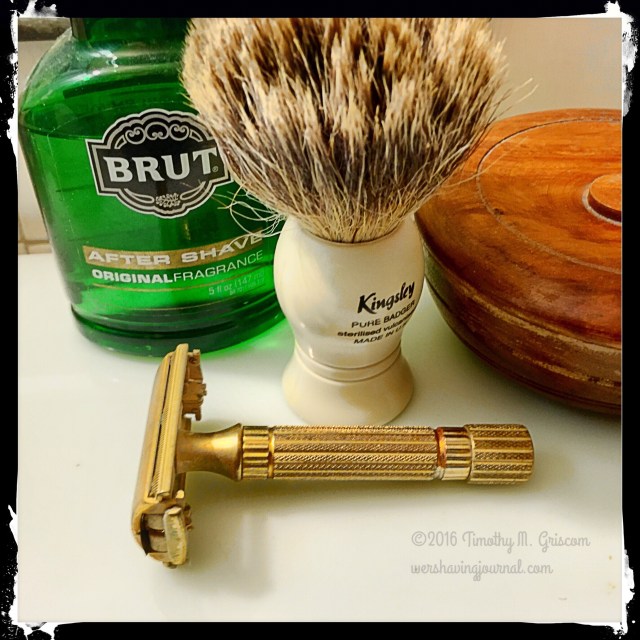 6Feb2016 Gillette Aristocrat Posted in Aristocrat, Gillette, Uncategorized by timgriscom Shave of the Day February 6, 2016 Taylor of Old Bond Street lavender soap Kingsley Badger brush Gillette Aristocratic razor Personna Lab Blue blade (3) Brut aftershave