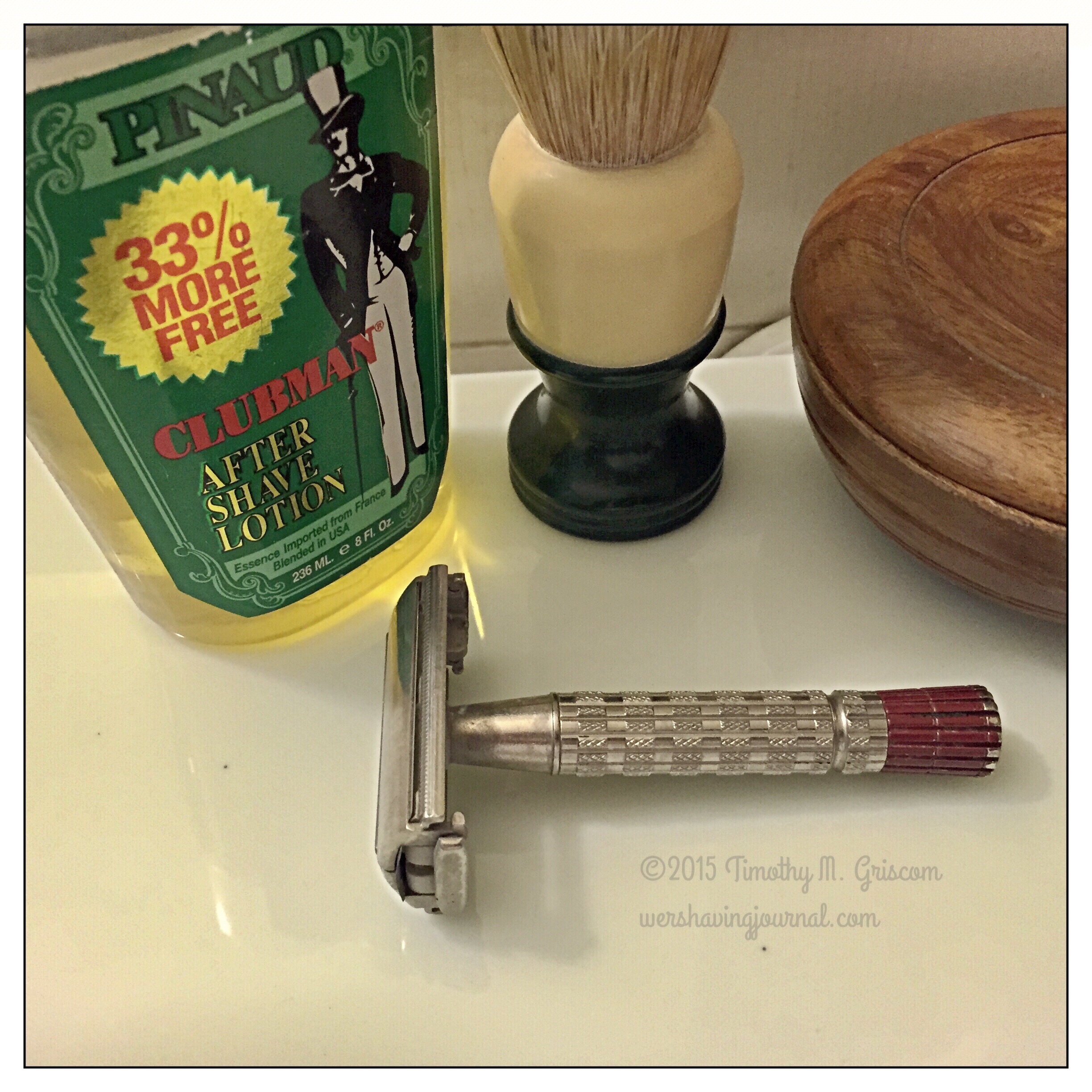 6Aug2015 Gillette Red Tip Posted in Gillette, Red Tip Superspeed by timgriscom Shave of the Day August 6, 2015 Taylor of Old Bond Street lavender soap Ever-Ready 200M brush Gillette red tip Superspeed Treet Blade (7) Pinaud Clubman aftershave